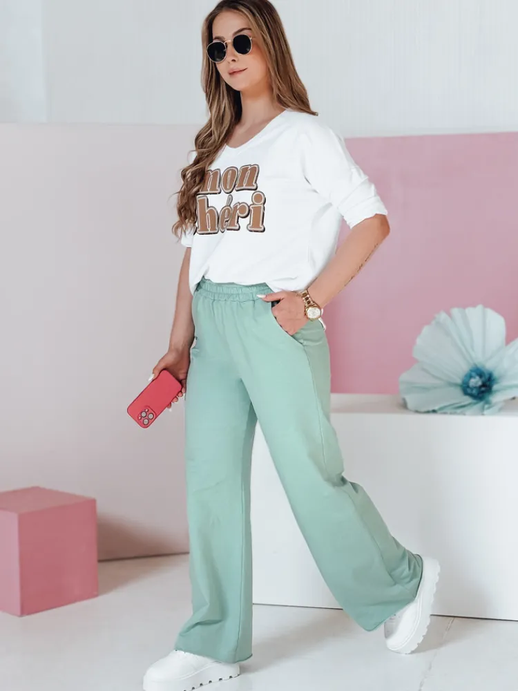 Luźne spodnie dresowe z szerokimi nogawkami to must-have dla kobiet ceniących wygodę i styl. Wysoki stan wydłuża optycznie nogi. Wygodna gumka w pasie doskonale dopasowuje się do sylwetki, zapewniając komfort przez cały dzień. Uniwersalny rozmiar pasuje od XS do L. Dzięki lekkiej tkaninie spodnie są idealne na cieplejsze dni oraz spacery. Kieszenie z przodu to dodatkowy atut, który łączy modę z urokiem. Idealny wybór na spacery oraz relaks w domu.