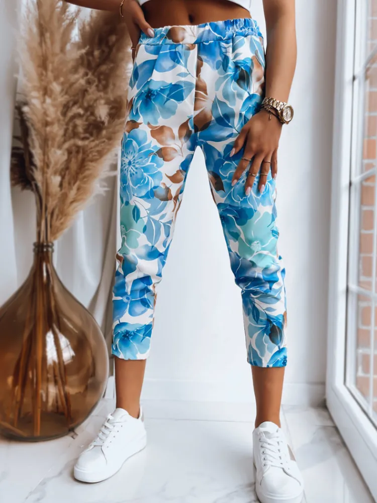 Eleganckie spodnie wykonane z wysokiej jakości materiału, w niepowtarzalne, kwiatowe wzory. Świetny wybór niezależnie od okazji. W pasie posiadają gumkę, dzięki której idealnie dopasowują się do sylwetki, oraz funkcjonalne kieszenie. Nogawki zwężane są ku dołowi. Propozycja, która wygląda bezbłędnie w każdym zestawieniu. Z marynarką BLOOMING MEADOW stworzysz komplet w formie garnituru.