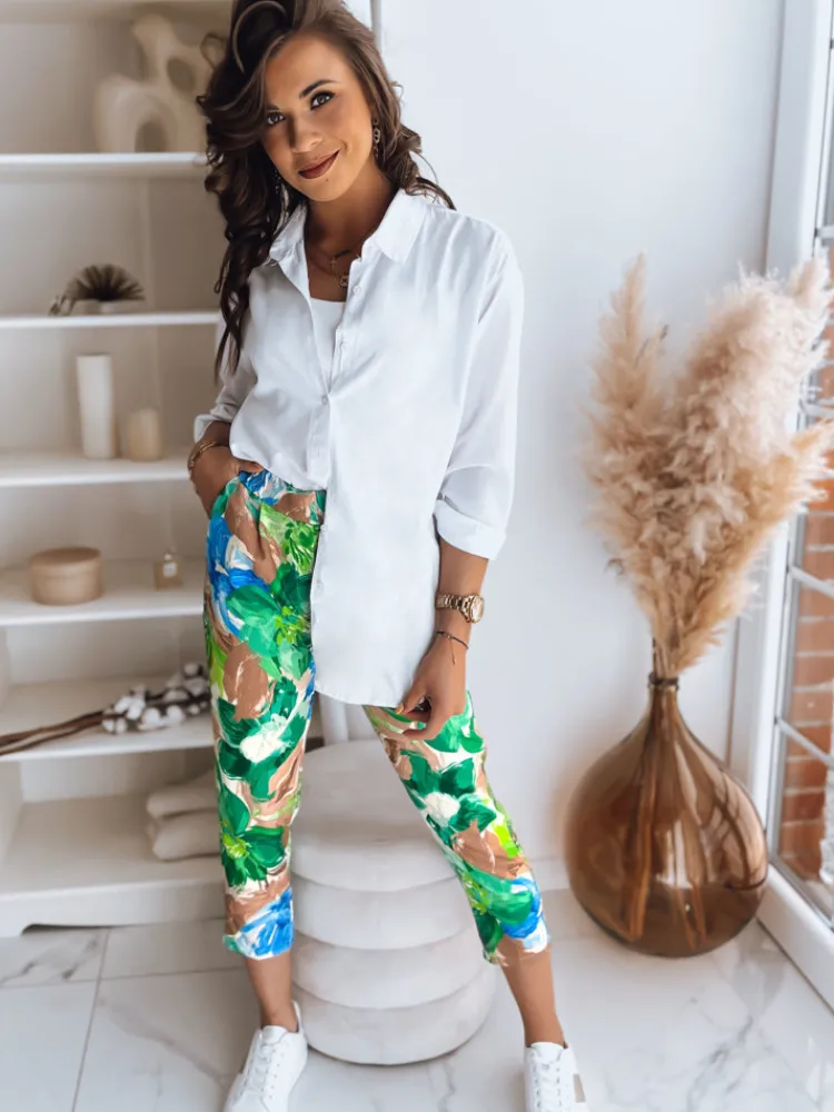 Eleganckie spodnie wykonane z wysokiej jakości materiału, w niepowtarzalne, kwiatowe wzory. Świetny wybór niezależnie od okazji. W pasie posiadają gumkę, dzięki której idealnie dopasowują się do sylwetki, oraz funkcjonalne kieszenie. Nogawki zwężane są ku dołowi. Propozycja, która wygląda bezbłędnie w każdym zestawieniu. Z marynarką BLOOMING MEADOW stworzysz komplet w formie garnituru.