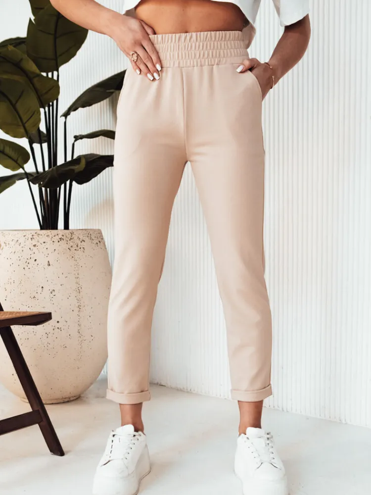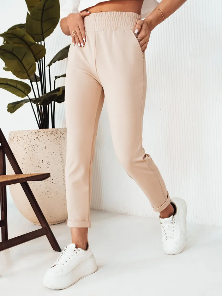 Spodnie HILES to idealne rozwiązanie dla kobiet ceniących sobie elegancję bez kompromisu w komforcie. Wysoki stan oraz elastyczna gumka w pasie zapewniają idealne dopasowanie i podkreślają sylwetkę. Ich uniwersalny fason sprawdzi się zarówno w biurze, jak i podczas weekendowych wyjść. Przyjemny materiał i przemyślany design gwarantują, że będą one Twoim ulubionym elementem garderoby.