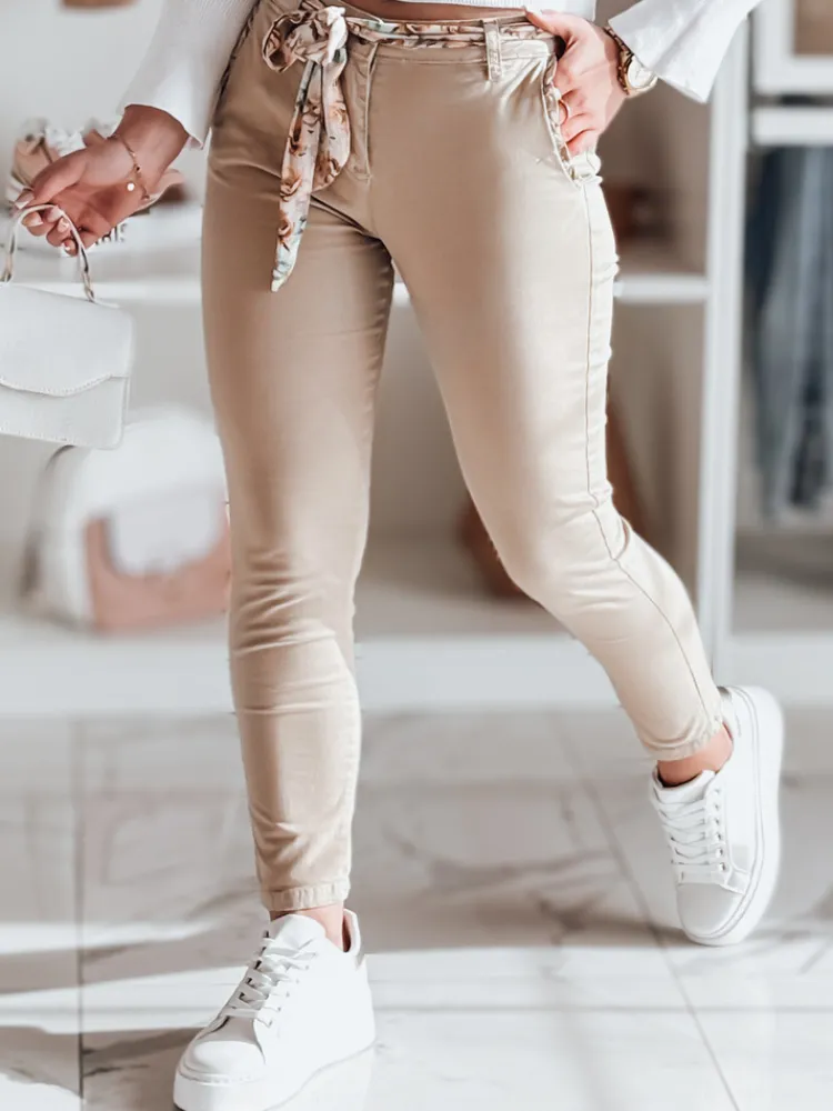 Spodnie damskie materiałowe chinosy z paskiem ROSSALI