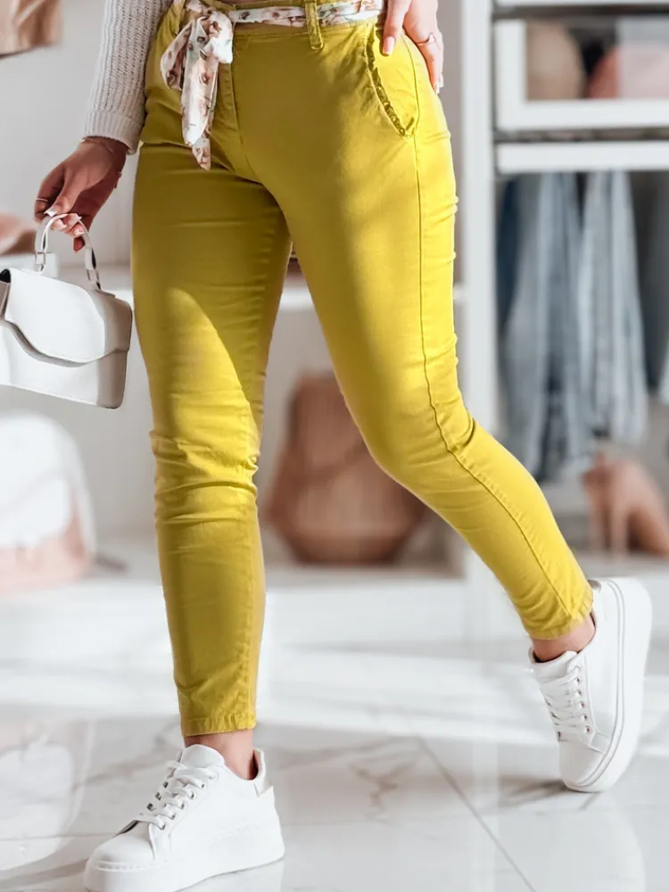 Spodnie damskie materiałowe chinosy z paskiem ROSSALI