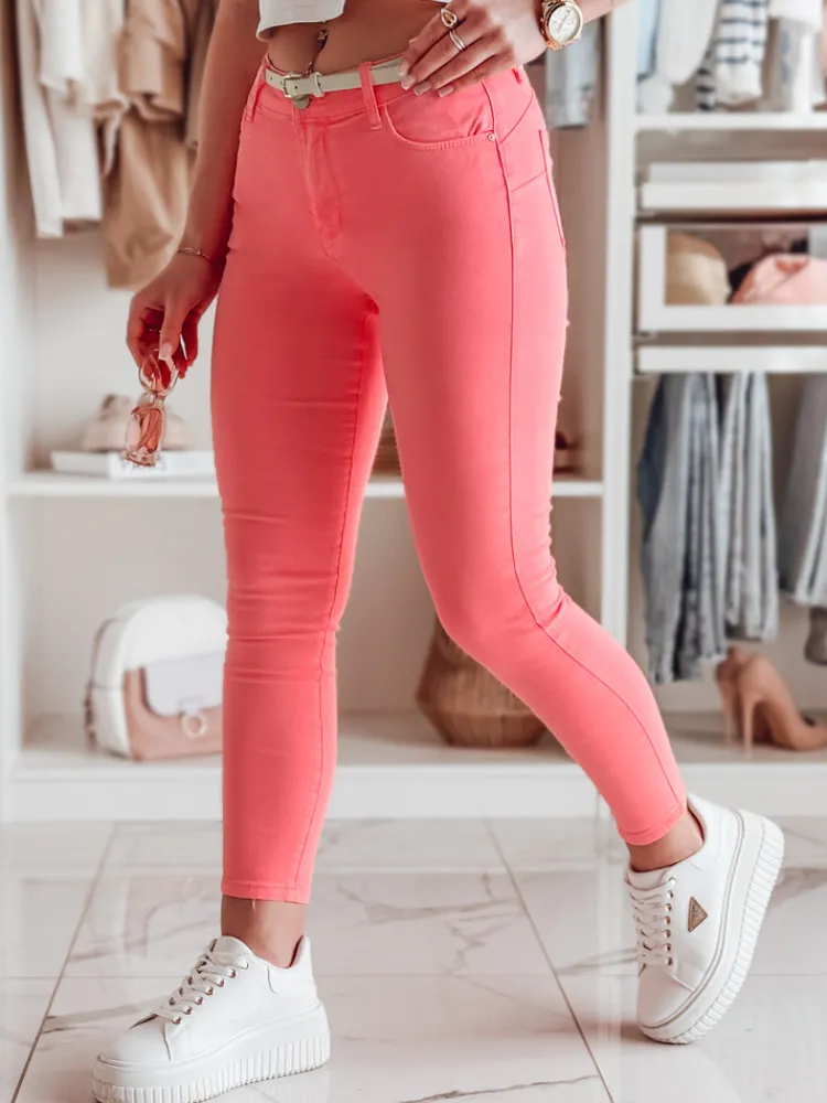 Dopasowane spodnie damskie typu skinny, idealne do codziennych stylizacji, wysmuklając optycznie figurę. Wysoki stan podkreśla sylwetkę, a elastyczny materiał zapewnia komfort noszenia. Ozdobne kieszenie dodają uroku, a pasek w zestawie pozwala na indywidualne dopasowanie. Nogawki przed kostkę sprawiają, że świetnie komponują się zarówno ze sportowym, jak i eleganckim obuwiem.