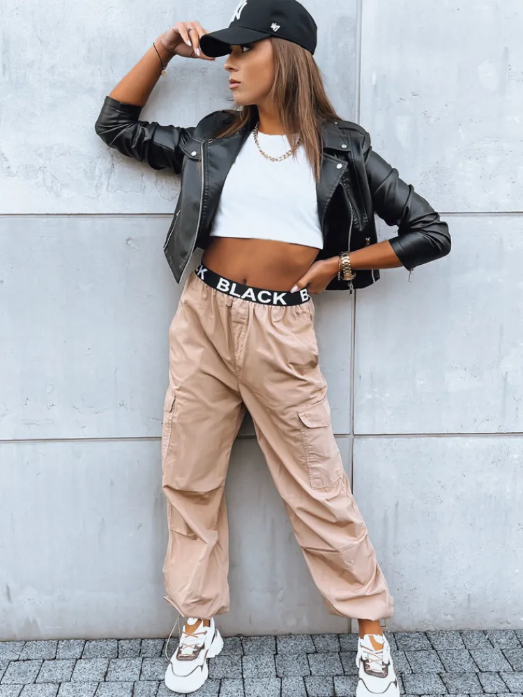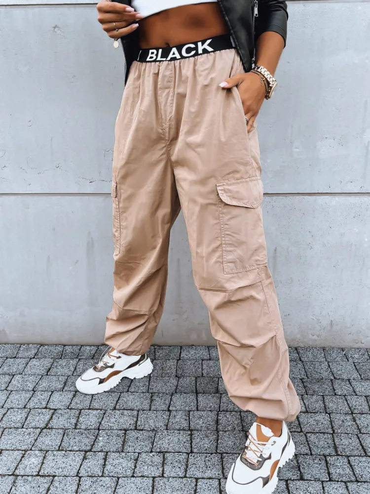 Spodnie DAVOS typu parachute o hit tego sezonu! Gumka w talii umożliwia dopasowanie do sylwetki. Dół zakończony jest ściągaczami, dzięki którym możemy regulować długość i wygląd. Model posiada również kieszenie na nogawkach.