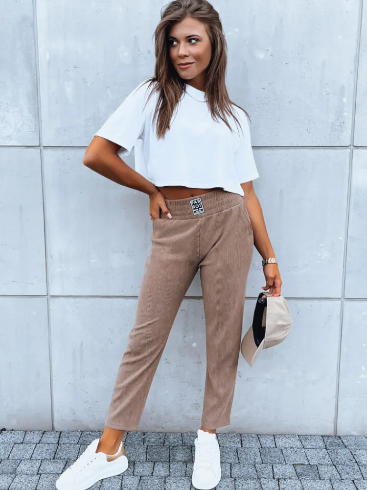 Spodnie dresowe PARROT to niewątpliwy must have w garderobie każdej kobiety. Model ten wykonany jest z przyjemnego i miękkiego w dotyku materiału sztruksowego. Spodnie te mają elastyczny pas z wygodną szeroką gumką, dzięki której spodnie doskonale dopasują się do każdej figury. Mają luźny, lekko zwężany krój, co sprawia, że są idealne do noszenia na co dzień, zarówno w domu, jak i na spacerze po mieście.