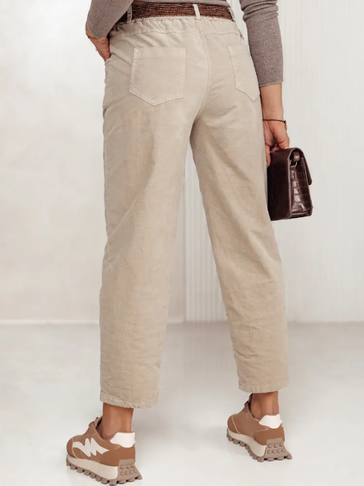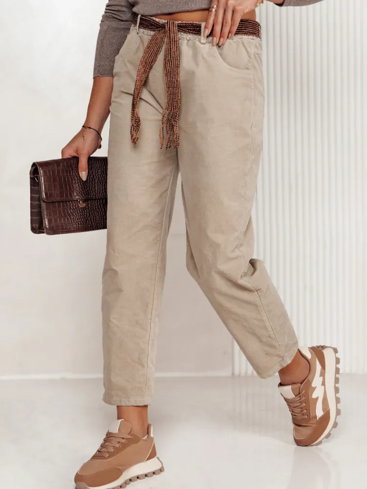Spodnie damskie oversize sztruksowe chinos z paskiem SOFTYLA