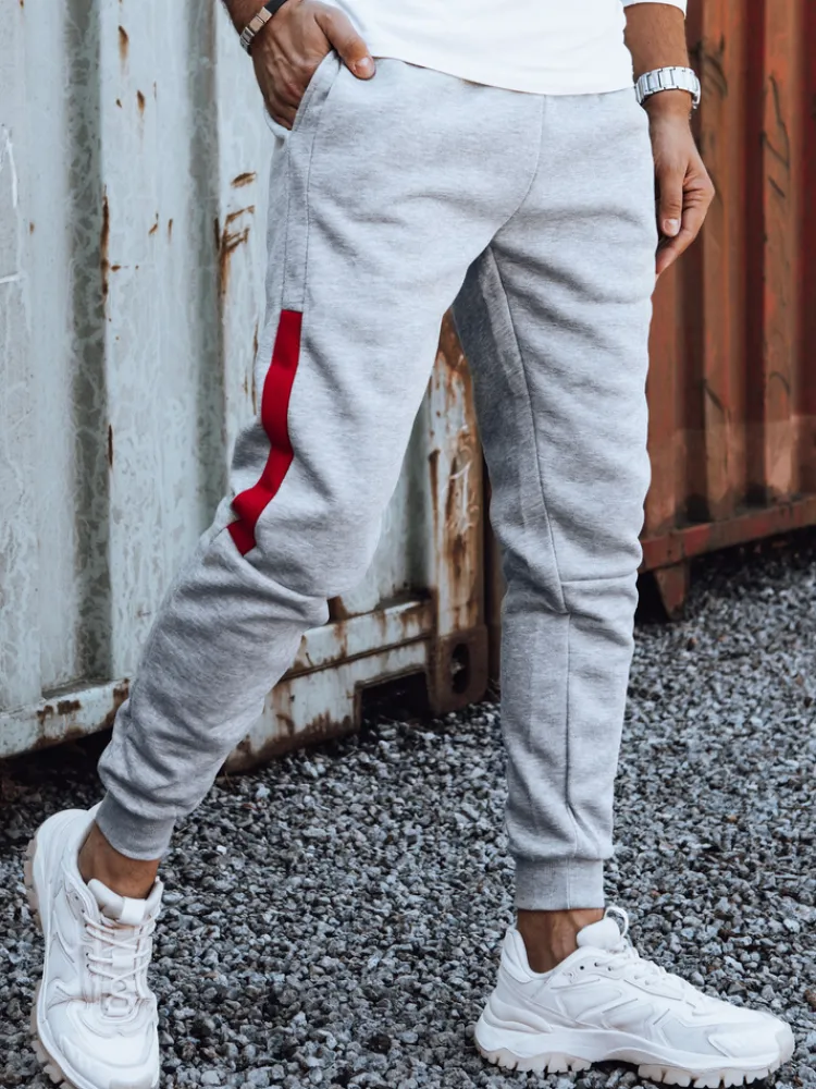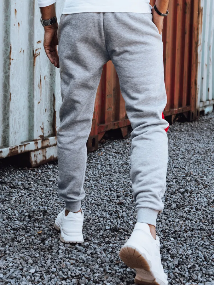 Stylowe i wygodne męskie spodnie dresowe, stworzone z myślą o codziennym użytkowaniu. Miękki materiał zapewnia komfort noszenia, a wykończenia w postaci ściągaczy w pasie i nogawkach gwarantują idealne dopasowanie. Pas dodatkowo regulowany sznurkiem, co pozwala na indywidualne dostosowanie spodni do sylwetki. Dwie funkcjonalne kieszenie z przodu sprawiają, że spodnie są praktyczne, a nadruk przy lewej kieszeni nadaje im oryginalnego stylu. To doskonały wybór dla mężczyzn ceniących wygodę i modny wygląd.