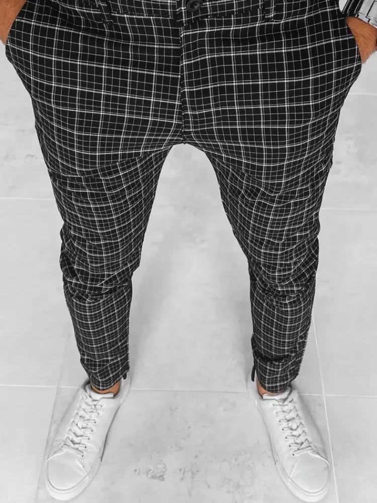 Spodnie Męskie>Dstreet Spodnie męskie chinosy w kratę czarne UX3968