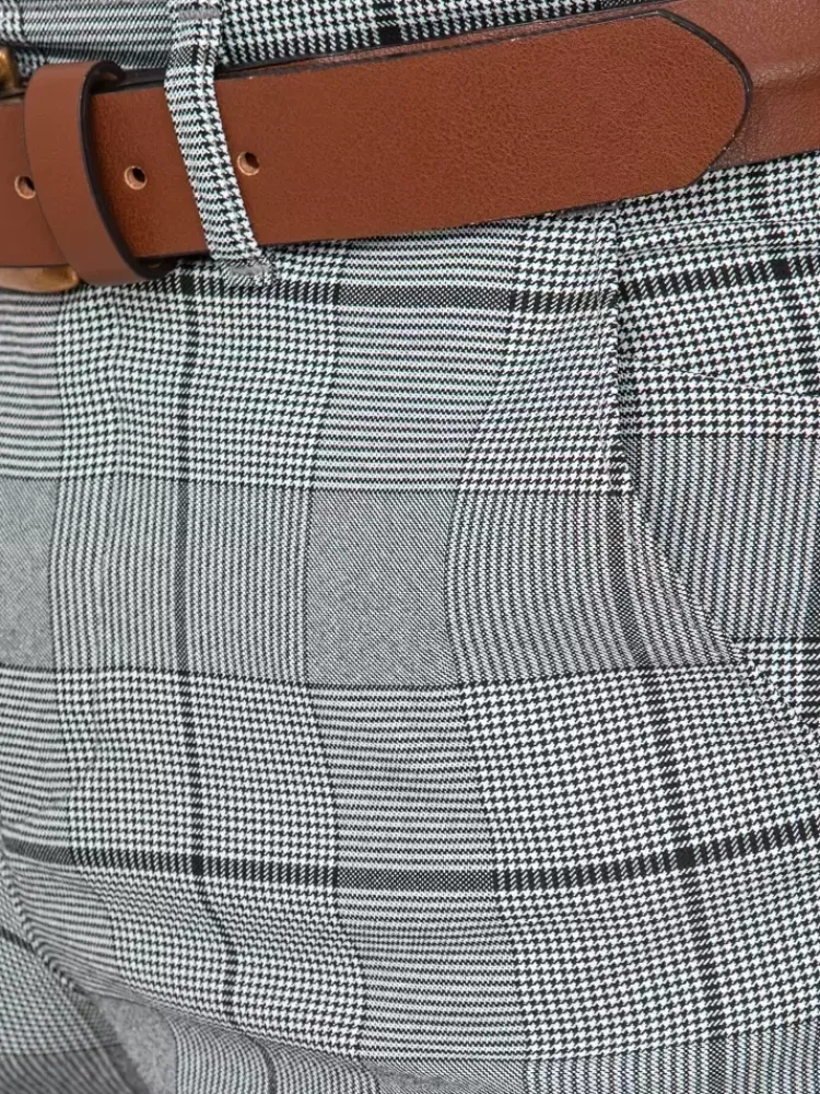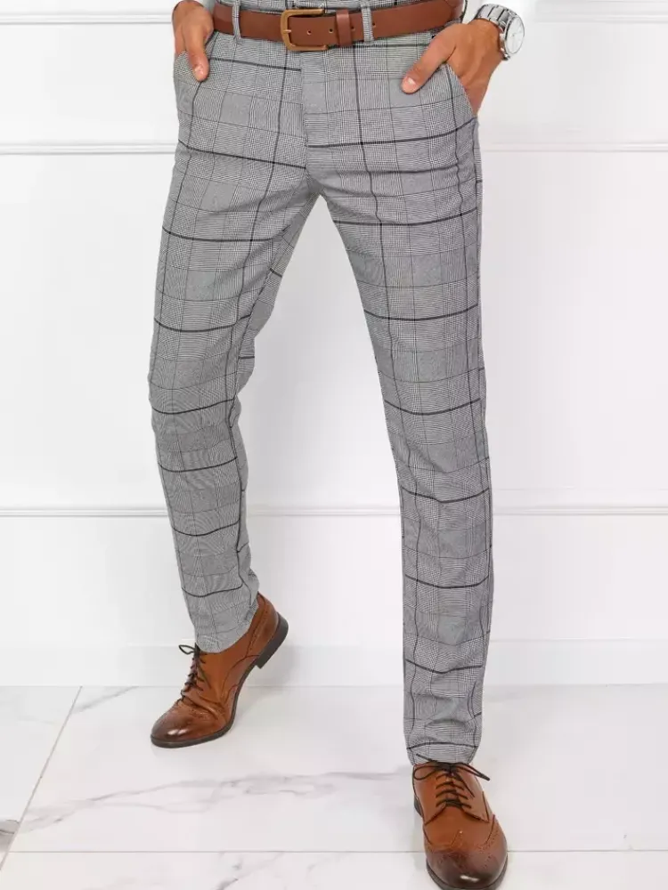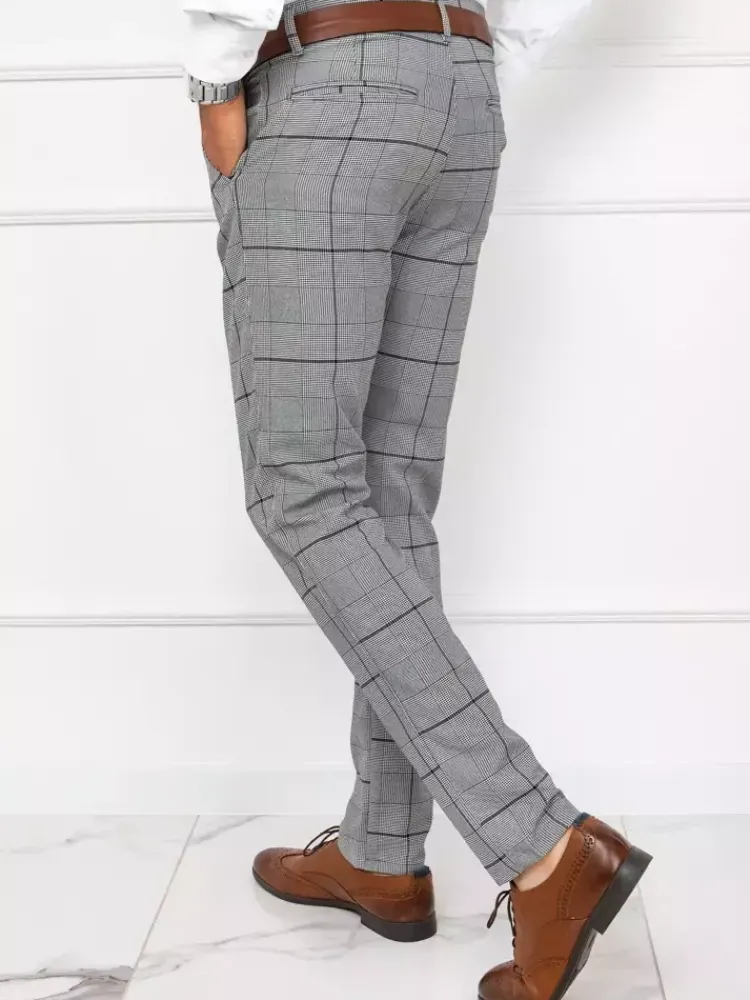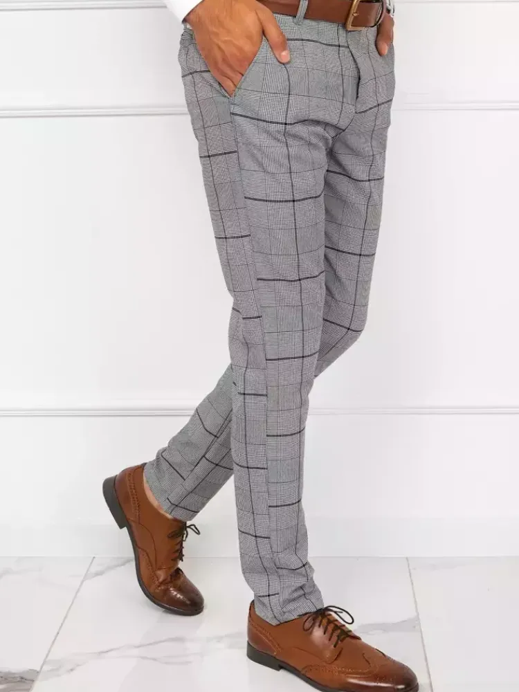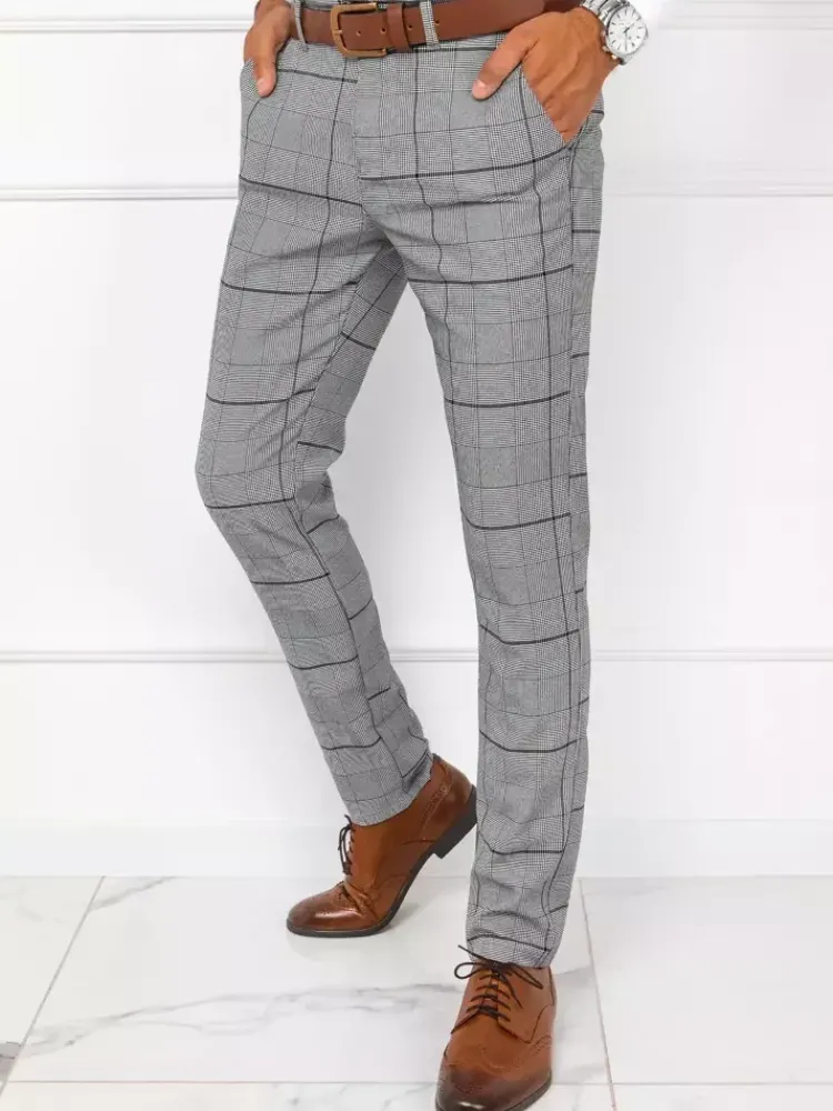 - Męskie spodnie materiałowe typu chinos w kratę.