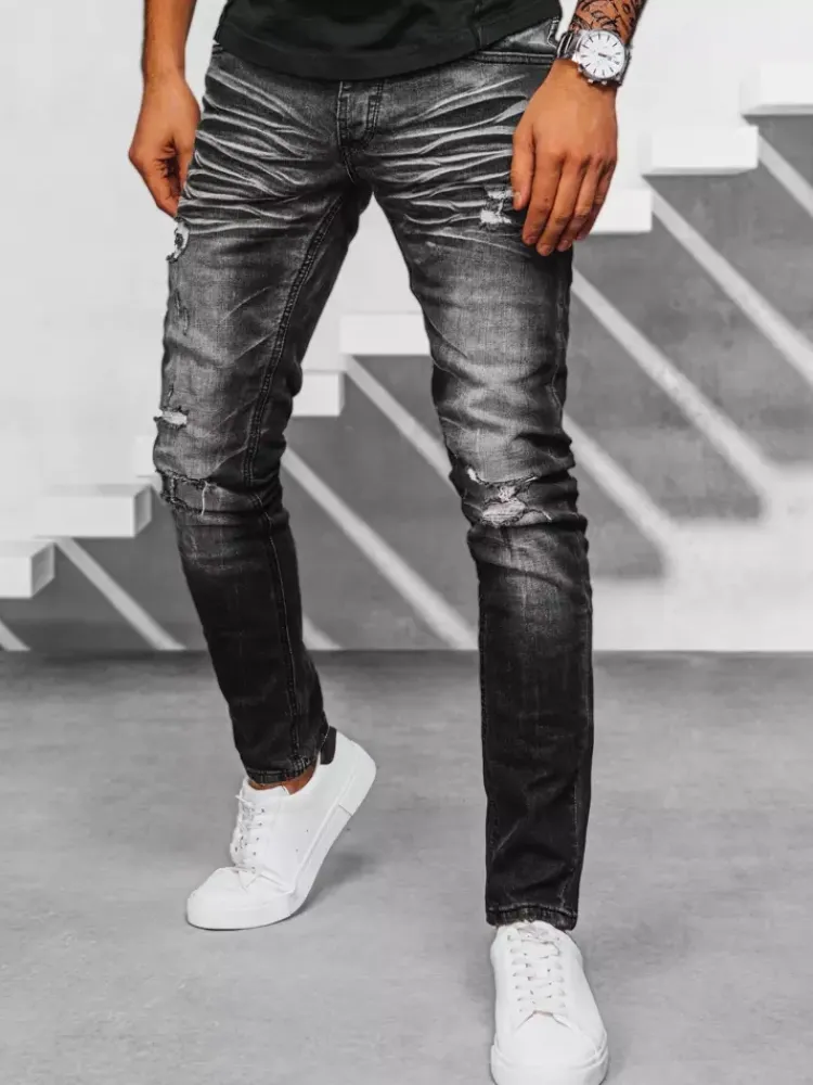 Rewelacyjne męskie spodnie jeansowe.Wykonane z przyjemnego w dotyku materiału.Zapinane na guziki.Modne dziury oraz prz…