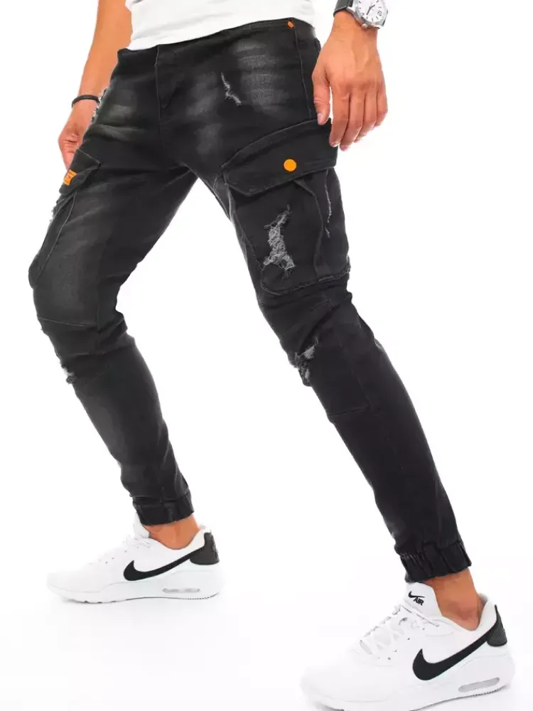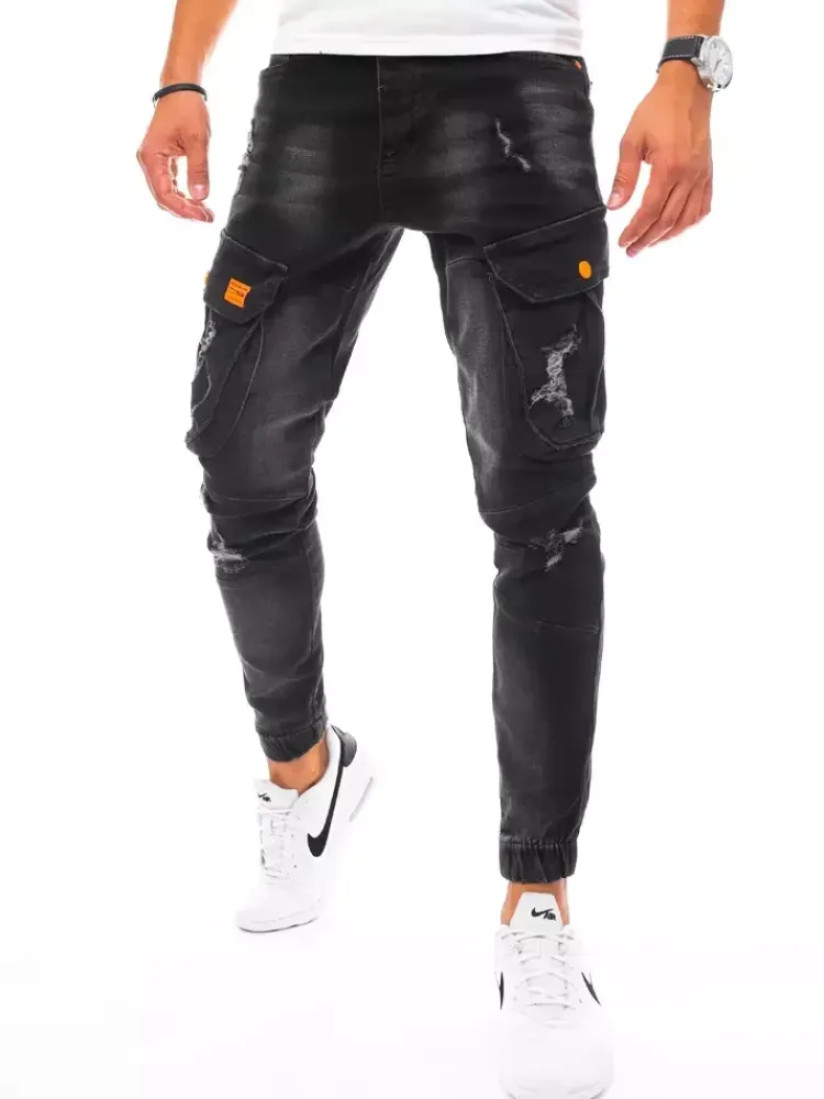 Spodnie Męskie|Jeansy Męskie>Dstreet Spodnie męskie jeansowe typu bojówki czarne UX3256