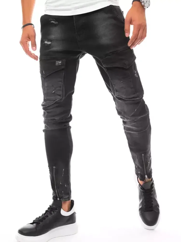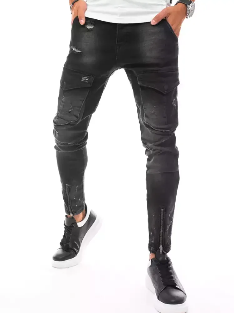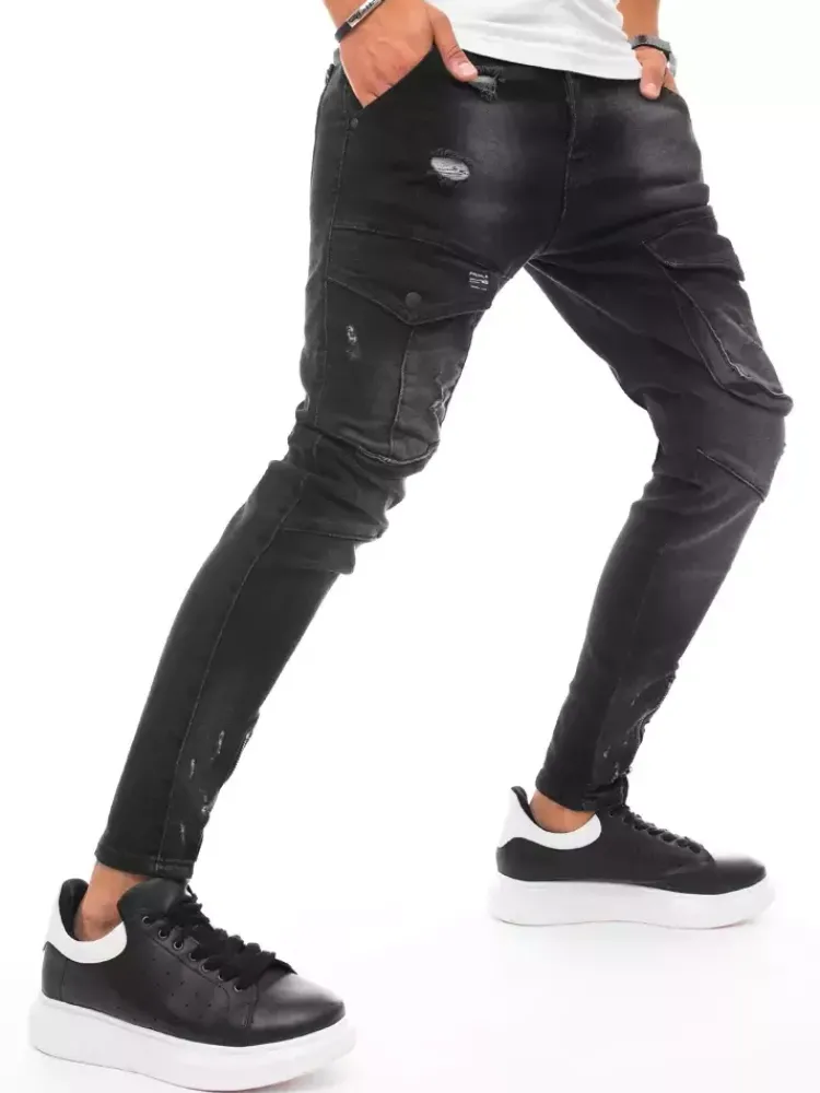 Spodnie Męskie|Jeansy Męskie>Dstreet Spodnie męskie jeansowe typu bojówki czarne UX3289