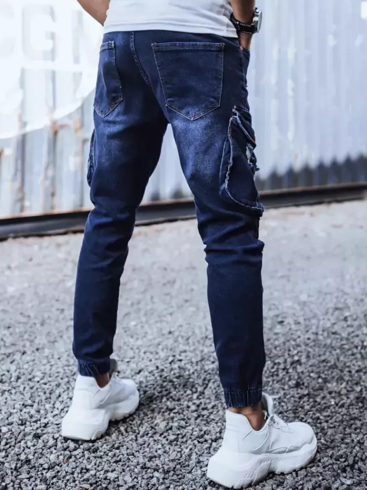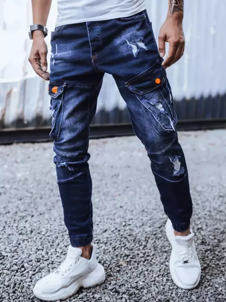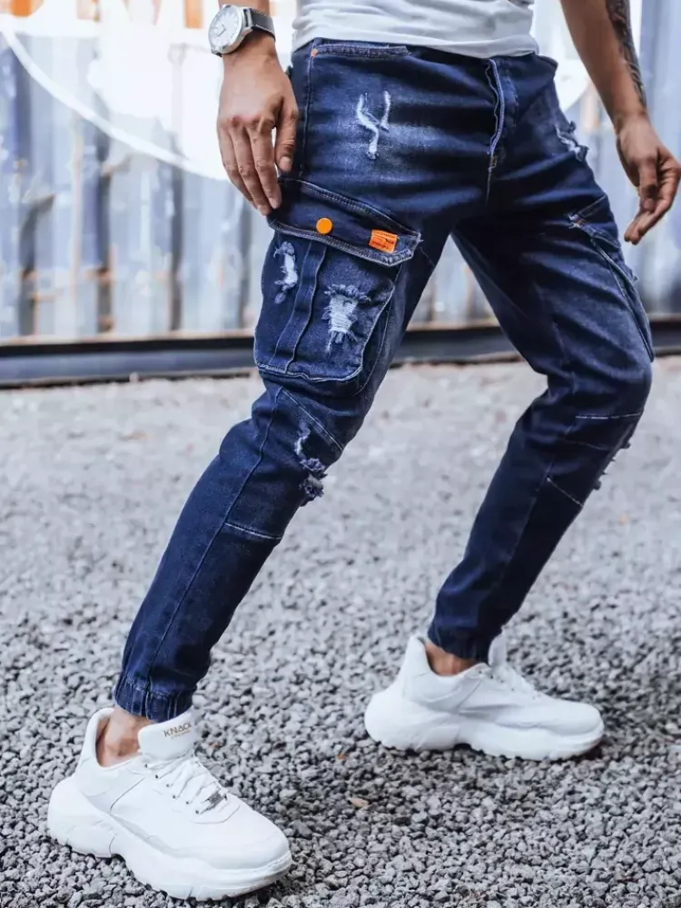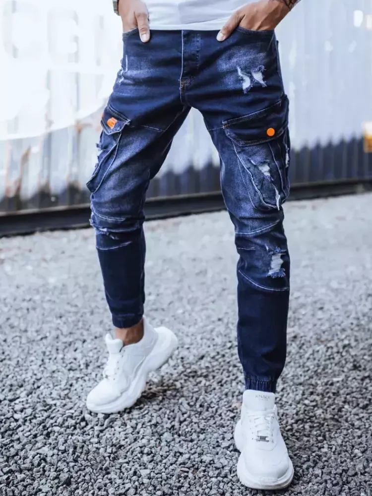 Spodnie Męskie|Jeansy Męskie>Dstreet Spodnie męskie jeansowe typu bojówki granatowe UX3262