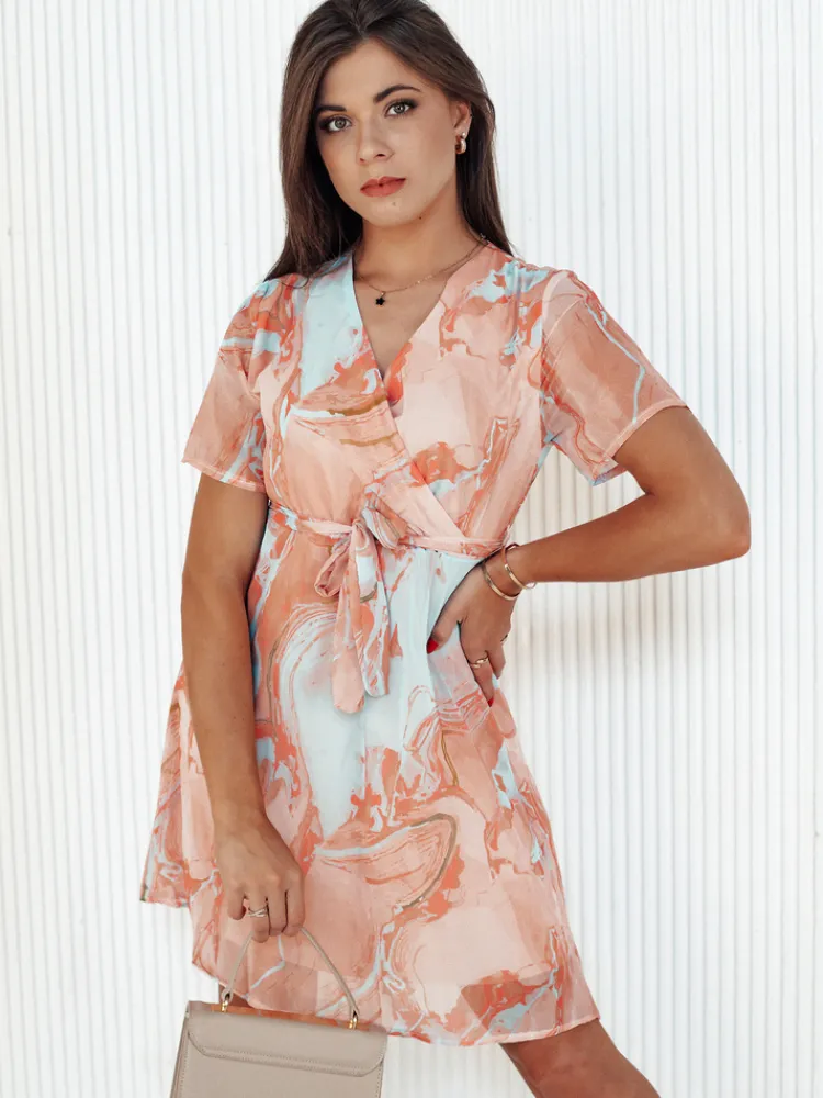 Wyjątkowa sukienka CHICLOVE zapewni Ci niepowtarzalny wygląd na każdą okazję. Wykonana z lekkiego, przyjemnego materiału, doskonale podkreśla sylwetkę dzięki dopasowanemu krojowi i subtelnemu wiązaniu w talii. Krótkie rękawy i elegancki wzór sprawiają, że sukienka jest idealna zarówno na co dzień, jak i na specjalne okazje. Dodaj ją do swojej garderoby i ciesz się komfortem oraz stylem.