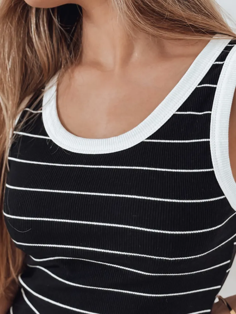 Stylowa sukienka mini na ramiączkach z prążkowanego materiału to propozycja dla miłośniczek wygody i kobiecego looku. Dopasowany krój podkreśla kształty, a elastyczna tkanina gwarantuje komfort. Kontrastowe paski dodają jej charakteru, a okrągły dekolt sprawia, że świetnie wygląda solo lub w duecie z jeansową kurtką. Doskonały wybór na letnie dni i wakacyjne wyjazdy.