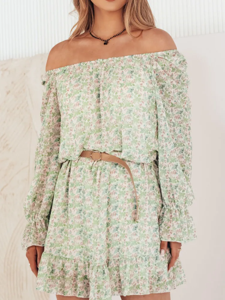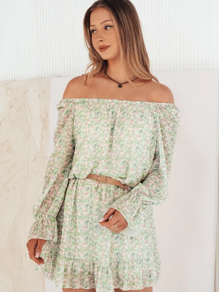Poczuj się wyjątkowo w sukience hiszpance KERVEN z odsłoniętymi ramionami, która łączy dziewczęcy urok z nutą elegancji. Wzór w delikatne kwiatuszki dodaje subtelności, a długość mini podkreśla nogi. Zakończenie falbanką sprawia, że ten model jest idealny na wiosenne i letnie dni. Spraw, by stała się Twoją ulubioną!