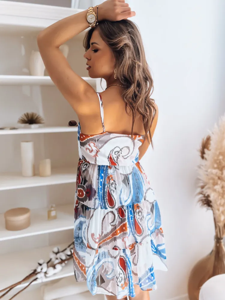 Sukienka MADISSON to niezwykle oryginalna propozycja z naszej najnowszej kolekcji. Odsłonięte ramiona, luźno puszczony dół i urocze falbany sprawiają, że w pełni czujemy lato. Model posiada regulowane ramiączka, podszewkę oraz gumkę w pasie, która pięknie podkreśli talię. Taka sukienka odsłaniająca ramiona doda uroku i kobiecości każdej z Was!