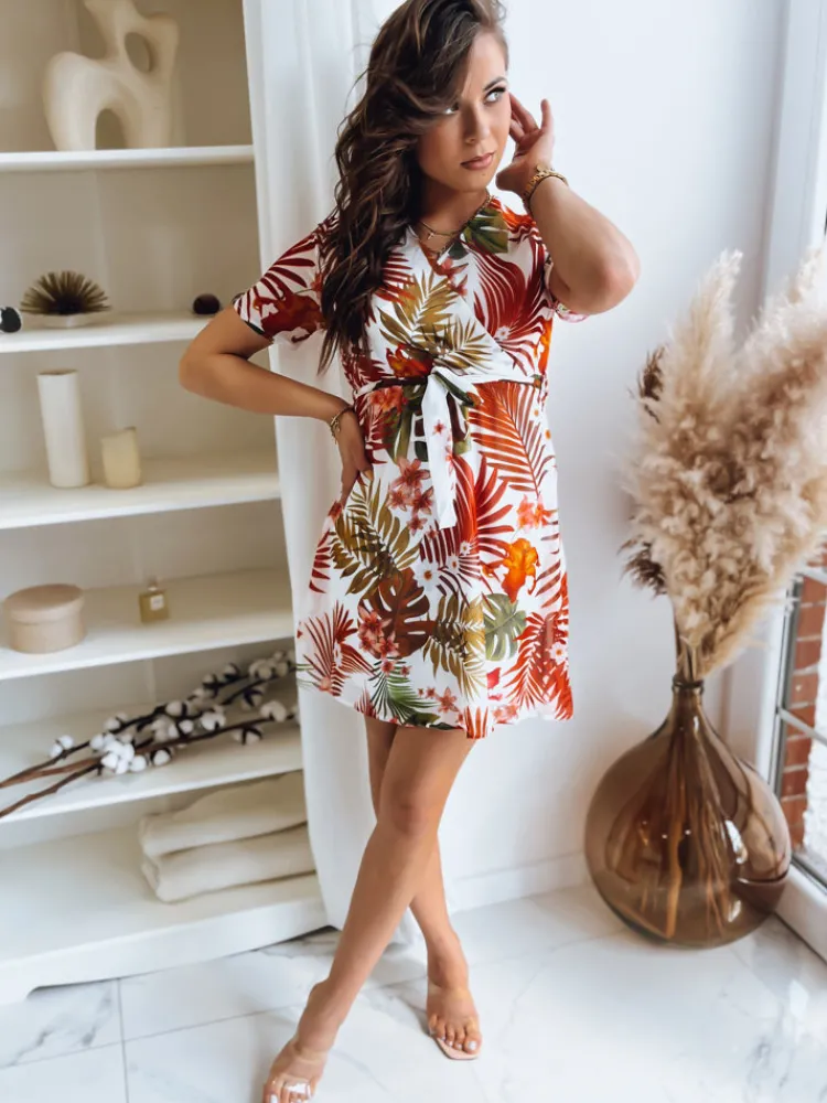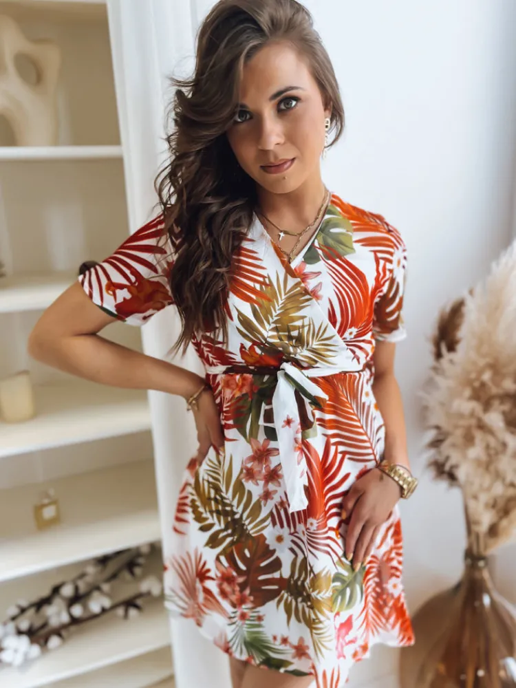 Sukienka MINI w przepiękny kwiecisty wzór to MUST HAVE w garderobie każdej stylowej kobiety. Model na krótki rękawek, posiada dekolt w zakładkę, podszewkę, gumkę oraz wiązanie w pasie. Będzie stanowić świetną bazę do wielu codziennych, letnich stylizacji i sprawi, że poczujesz się niezwykle kobieco!