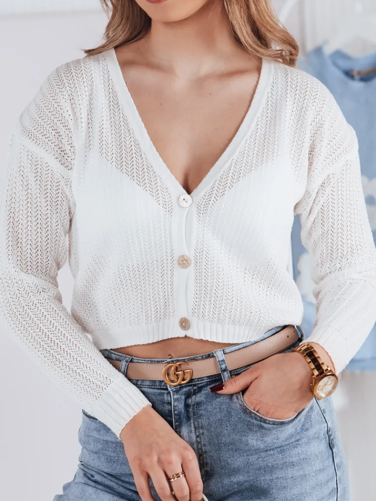 GOFFY to ażurowy sweterek zapinany na ozdobne guziczki. Jego luźny krój umożliwia różnorodne stylizacje – noszenie na jedno ramię, odsłonięty brzuch czy też w bardziej klasyczny sposób. Doskonale uzupełni stylizację w każdym sezonie. Dostępny w kilku wariantach kolorystycznych, sweter GOFFY pozwala dostosować się do własnych upodobań i stylu.