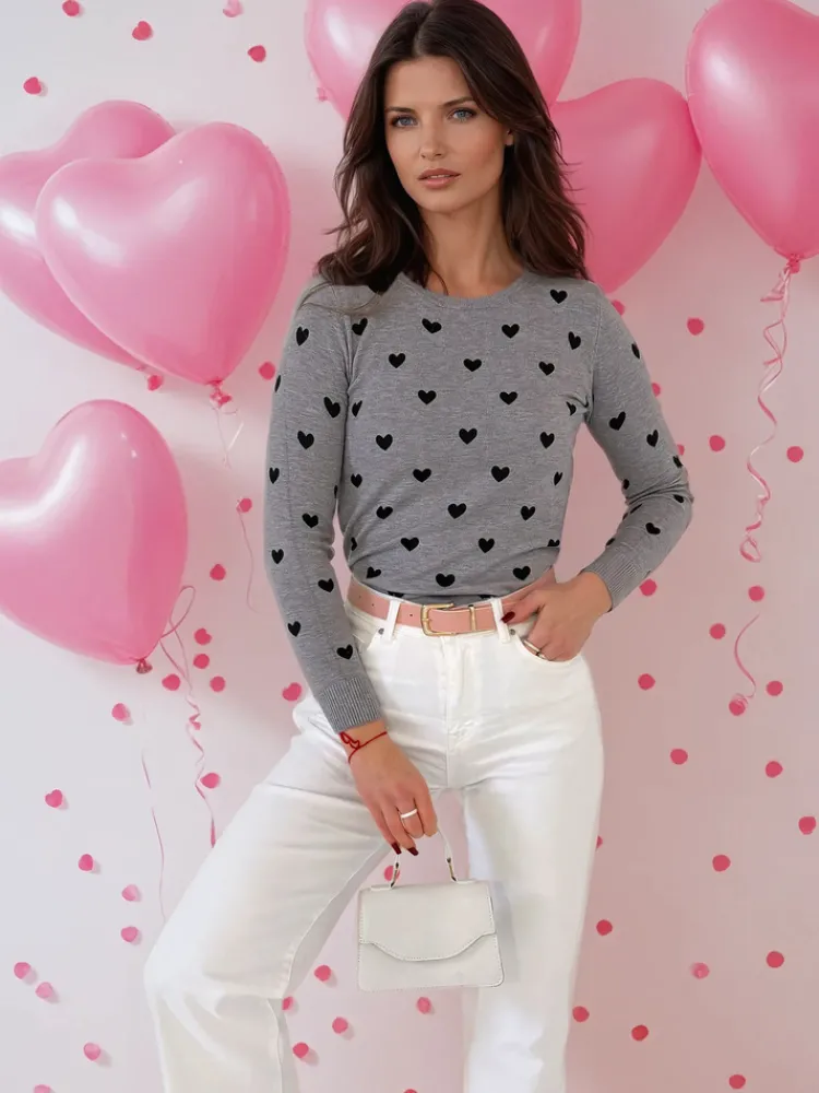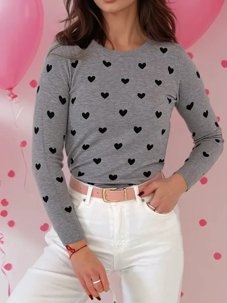 - Wyjątkowy Wzór: Serduszka dodają swetrowi romantycznego i dziewczęcego uroku.