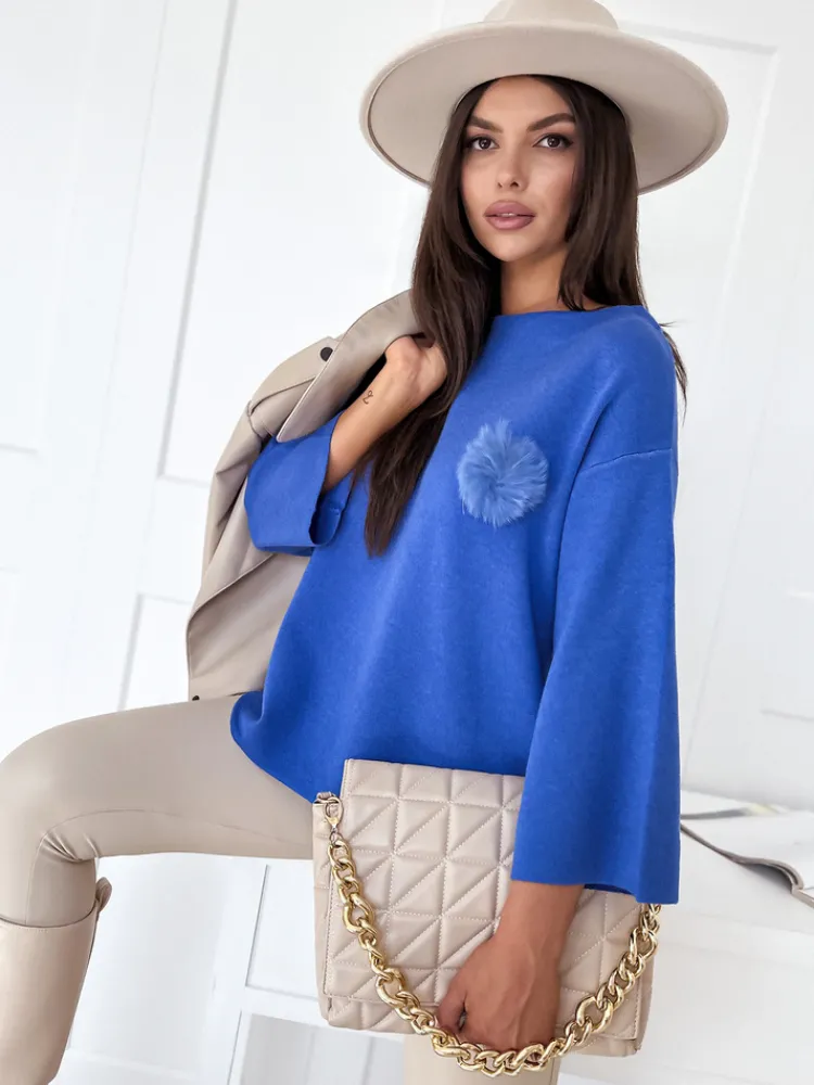 GAIA to klasyczna propozycja sweterka o oversizowym fasonie, która sprawdzi się w codziennych jak i eleganckich zestawieniach. Model posiada dekolt w łódkę, szerokie rękawy oraz ozdobny pomponik nadający niepowtarzalnego charakteru. Dostępny w sześciu kolorach.