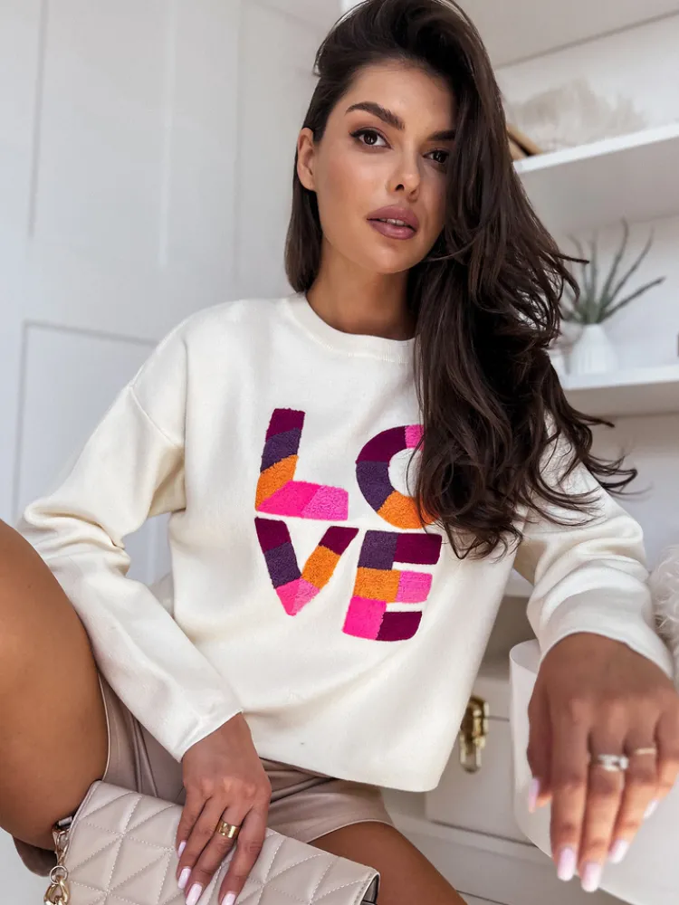 Sweter HARPER to propozycja dla kobiet ceniących styl i wygodę. Wykonany z wysokiej jakości materiału, niezwykle miły w dotyku, pięknie zaprezentuje się zarówno w casualowych jak i bardziej wymagających zestawieniach. Klasyczny model o delikatnie oversizowym fasonie. Całości charakteru nadaje kontrastowy napis LOVE. Dostępny w pięciu wersjach kolorystycznych.
