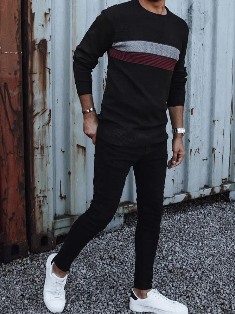Stylowy męski sweter z subtelnym wzorem w paski, który łączy elegancję z komfortem. Wykonany z miękkiej tkaniny, świetnie sprawdzi się w chłodniejsze dni, zapewniając ciepło i wygodę. Uniwersalny design sprawia, że pasuje zarówno do codziennych, jak i bardziej formalnych stylizacji.