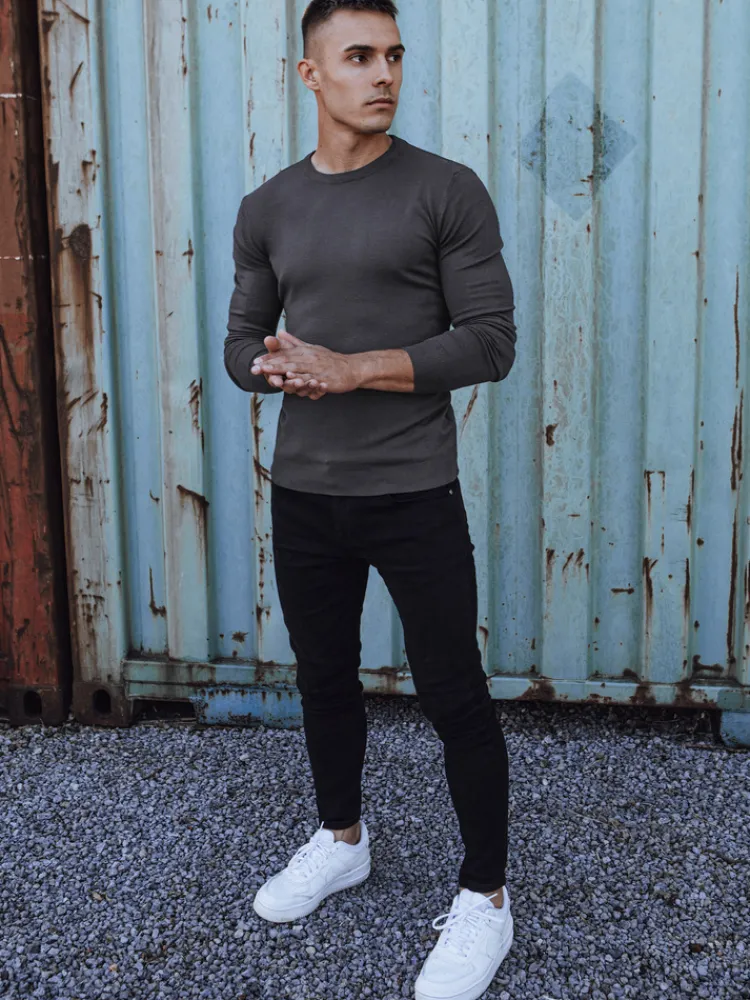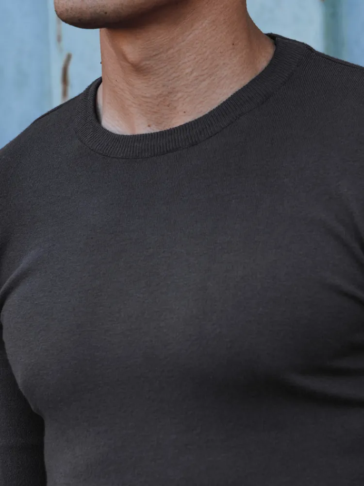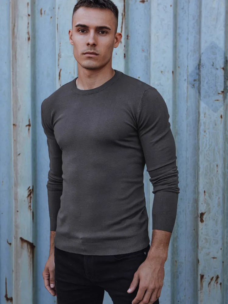 Uniwersalny sweter męski, który doskonale uzupełni każdą stylizację. Jego minimalistyczny krój i gładki splot dodają klasy, a wygodny materiał zapewnia komfort noszenia. Sprawdzi się zarówno na co dzień, jak i podczas bardziej oficjalnych okazji.