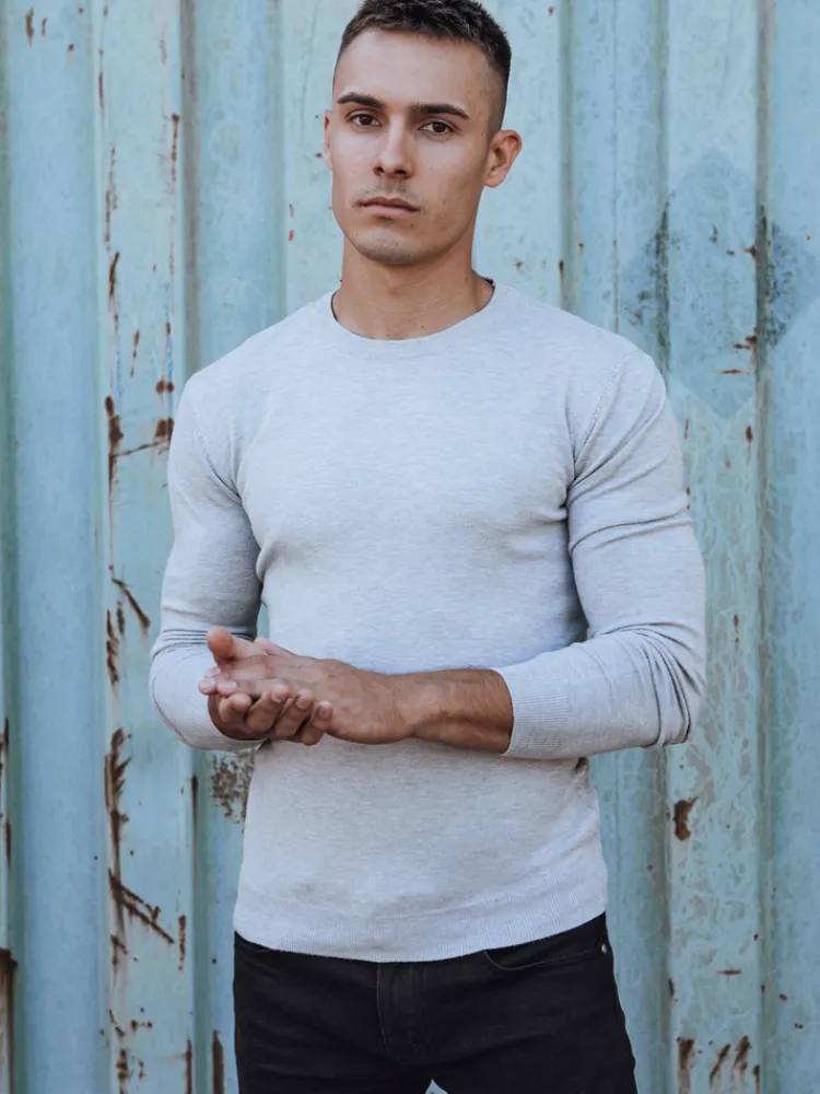 Swetry Męskie>Dstreet Sweter męski klasyczny jasnoszary WX2212