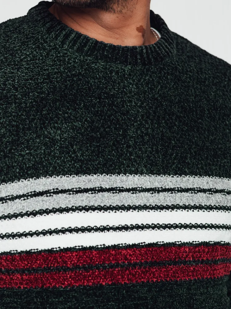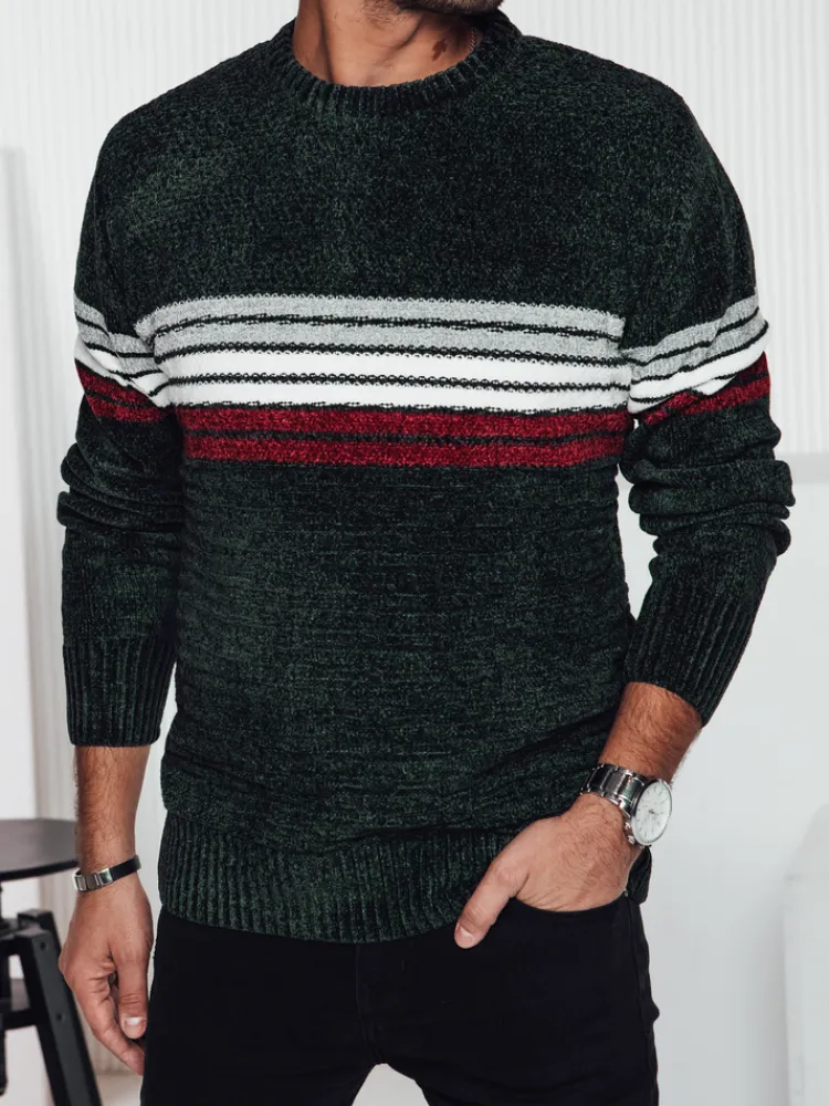 Sweter z przyciągającym wzrok, nowoczesnym wzorem w paski, który idealnie wpisuje się w miejskie trendy. Dzięki miękkiemu materiałowi zapewnia komfort noszenia przez cały dzień, a klasyczny krój dodaje elegancji każdej stylizacji. Idealny do zestawienia zarówno z jeansami, jak i eleganckimi spodniami, dla osób ceniących sobie styl i wygodę.
