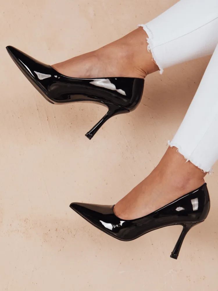 Klasyczne ale razem eleganckie szpilki. Model zrobiony z lakierowanej skóry ekologicznej i wkładki ze skóry ekologicznej. Nosek w kształcie szpicu. Obcas typu szpilka o długości 9 cm. Model został zaprojektowany z myślą o wygodzie i stabilności, dzięki czemu noszenie ich to czysta przyjemność.