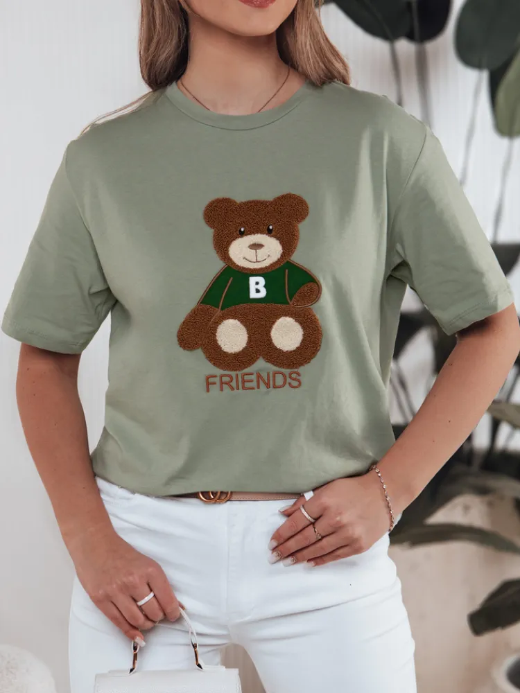Czy może być coś słodszego niż t-shirt z aplikacją przyjaznego misia? T-shirt BAREN to doskonała propozycja dla osób, które cenią sobie połączenie klasyki z wyjątkowymi detalami. Miękka aplikacja w kształcie misia dodaje tej koszulce uroku, a jej basicowy fason pasuje do wielu różnych zestawów. Doskonale uzupełni casualowy look, nadając mu przyjazny i modny charakter. Wybierz t-shirt BAREN, aby każdy Twój dzień był wypełniony uśmiechem i stylem.