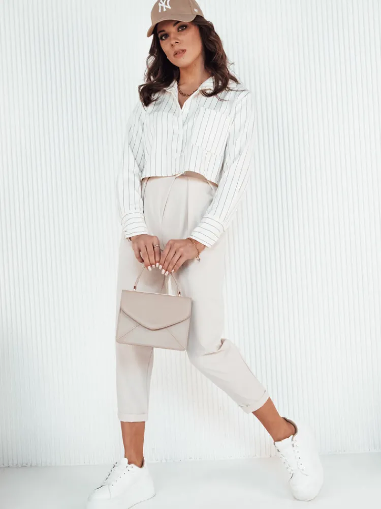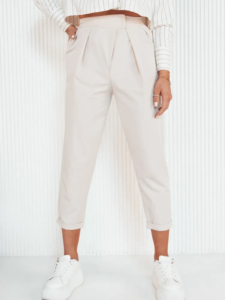Odkryj idealne połączenie stylu i komfortu z naszymi spodniami o wysokim stanie, zaprojektowanymi z myślą o funkcjonalności i elegancji. Praktyczne dwie kieszenie z przodu umożliwiają przechowywanie drobiazgów, a nogawki o długości do łydki nadają współczesny i modny wygląd. Idealne dla tych, którzy cenią sobie miejski szyk z nutą nonszalancji.