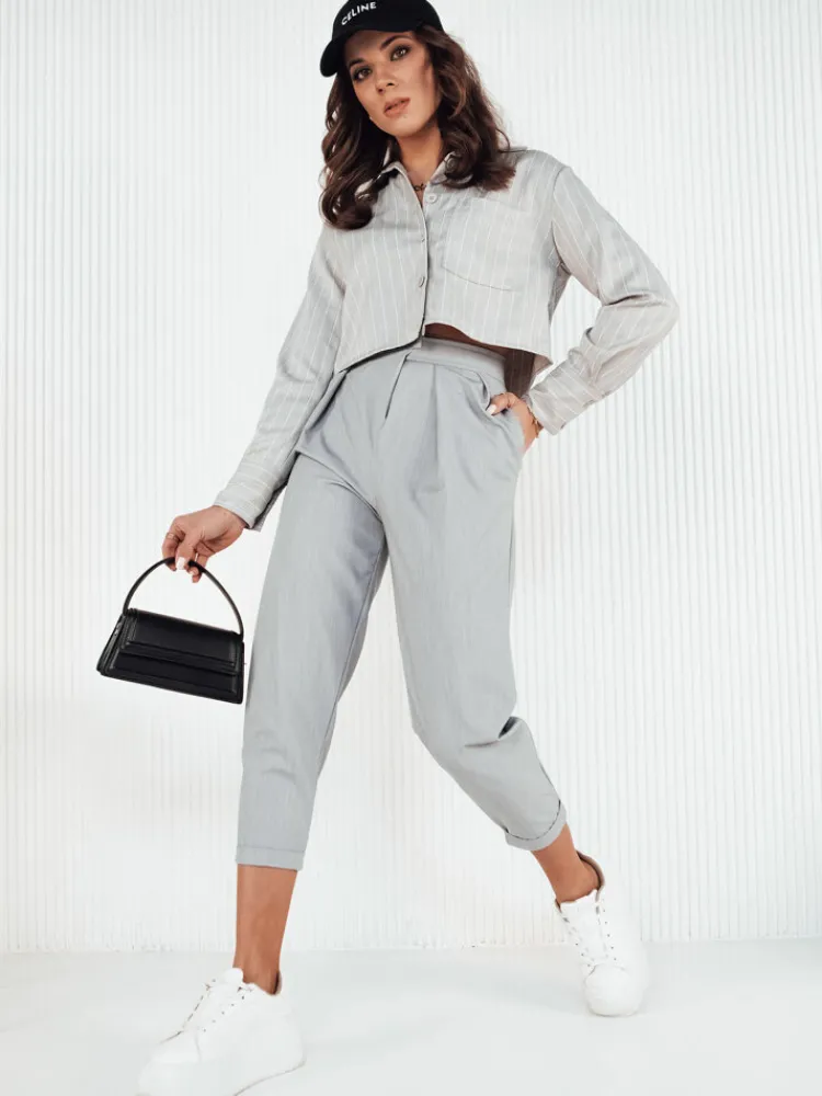 Odkryj idealne połączenie stylu i komfortu z naszymi spodniami o wysokim stanie, zaprojektowanymi z myślą o funkcjonalności i elegancji. Praktyczne dwie kieszenie z przodu umożliwiają przechowywanie drobiazgów, a nogawki o długości do łydki nadają współczesny i modny wygląd. Idealne dla tych, którzy cenią sobie miejski szyk z nutą nonszalancji.