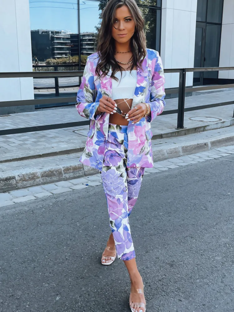 Eleganckie spodnie wykonane z wysokiej jakości materiału, w niepowtarzalne, kwiatowe wzory. Świetny wybór niezależnie od okazji. W pasie posiadają gumkę, dzięki której idealnie dopasowują się do sylwetki, oraz funkcjonalne kieszenie. Nogawki zwężane są ku dołowi. Propozycja, która wygląda bezbłędnie w każdym zestawieniu. Z marynarką BLOOMING MEADOW stworzysz komplet w formie garnituru.