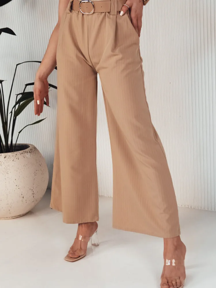 Wybierz nasze szerokie spodnie w paski i przyciągnij spojrzenia dzięki ich unikatowemu designowi. Wysoki stan oraz dołączony pasek dodaje klasy i pozwala na indywidualne dopasowanie – niezbędny element garderoby dla każdej modnej kobiety.