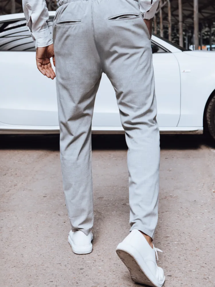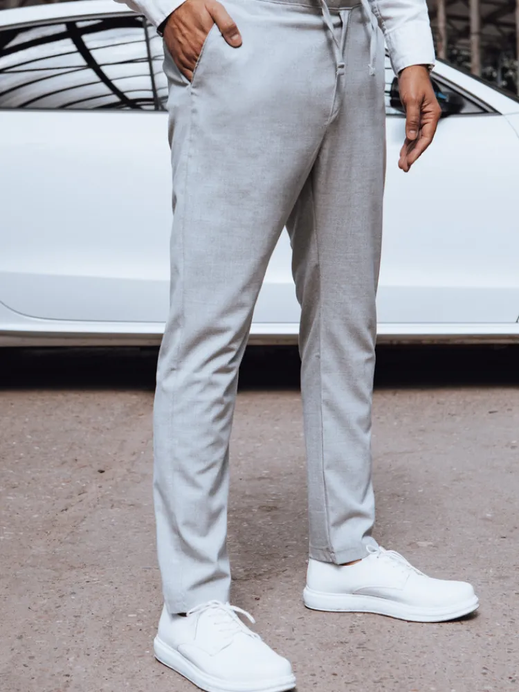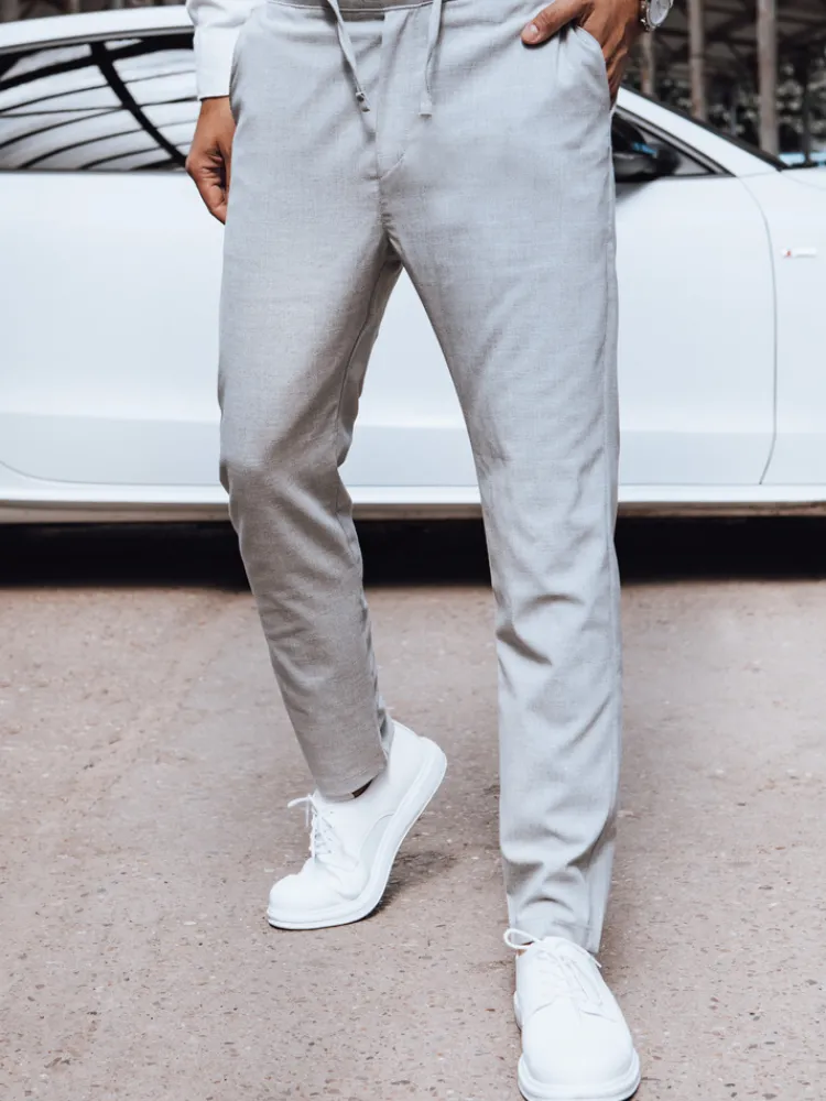 Spodnie, które powinny znaleźć się w szafie każdego mężczyzny. Wykonane z miękkiego, elastycznego materiału, zapewniają komfort noszenia przez cały dzień. Regulowany pas i sznurki pozwalają na idealne dopasowanie, a klasyczny krój sprawia, że są uniwersalne i pasują do wielu stylizacji. Świetnie sprawdzą się zarówno w pracy, jak i na spotkaniach ze znajomymi. Zainwestuj w spodnie, które łączą w sobie elegancję i wygodę.